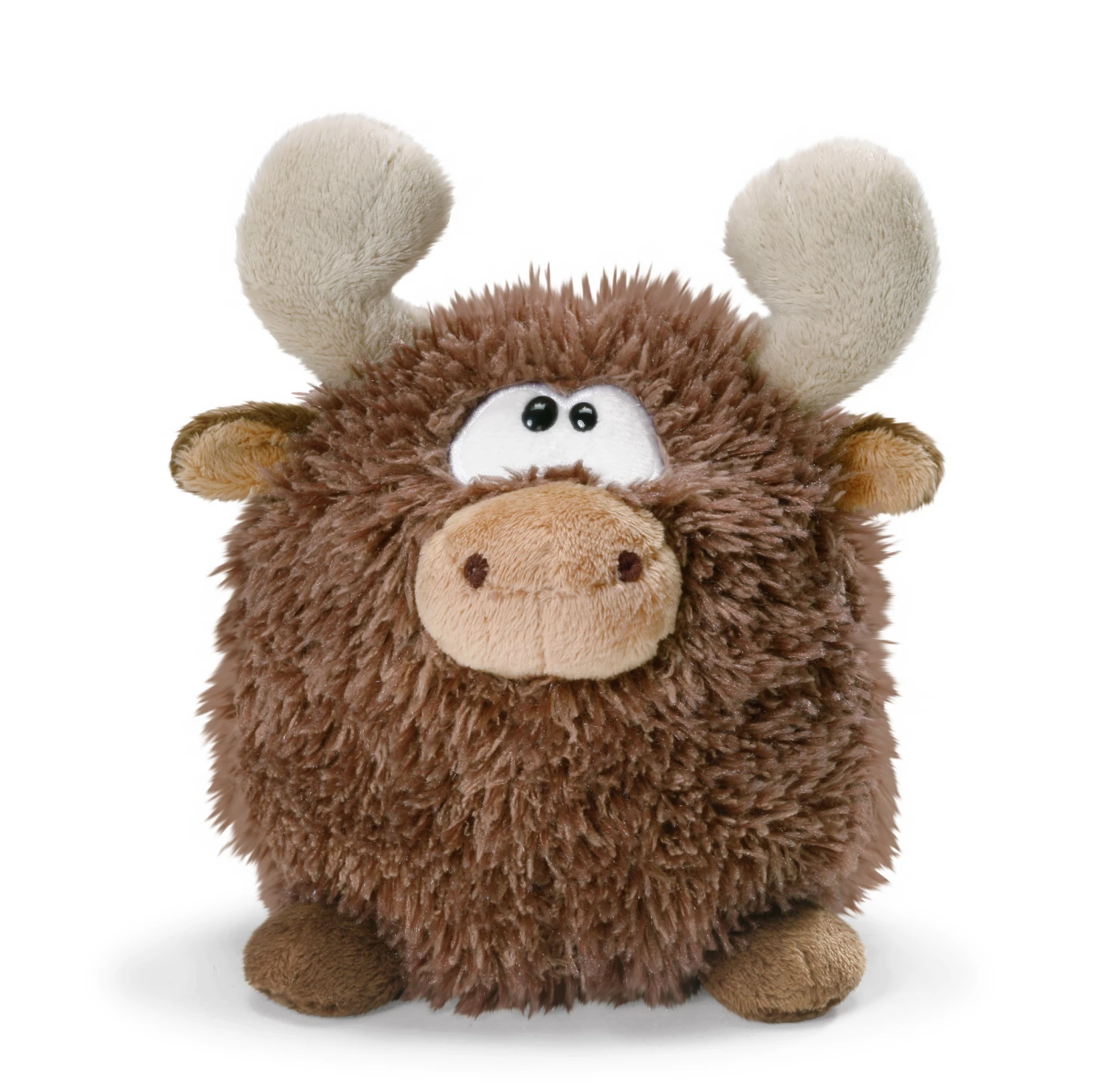 Der Elch lässt sich im orangen Plüschsack verstecken. Mit Klettverschluß kann man den Sack dann verschließen.