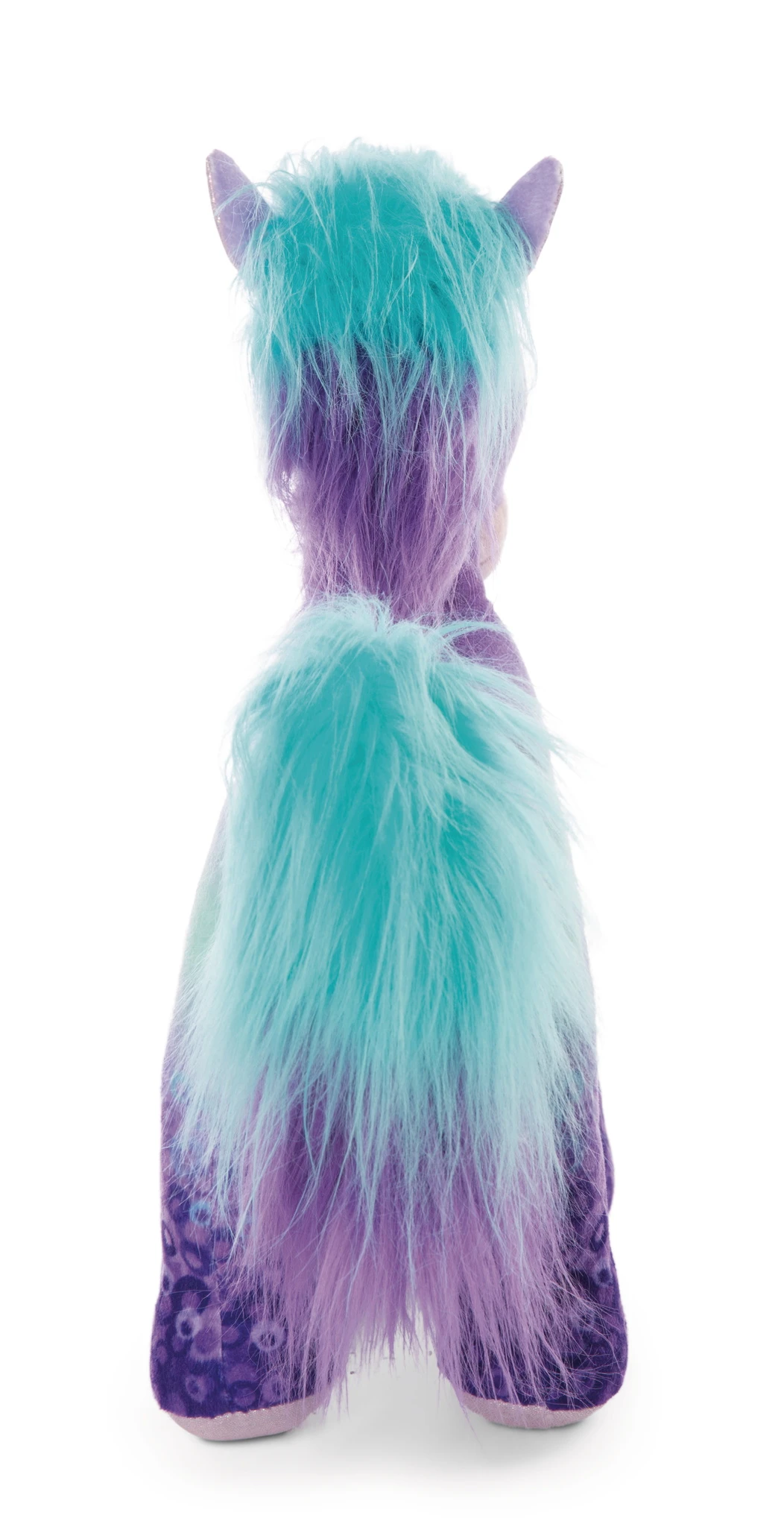 Ohren und Fußsohlen aus Glitzerstoff sowie zweifarbiger Mähne und Schweif